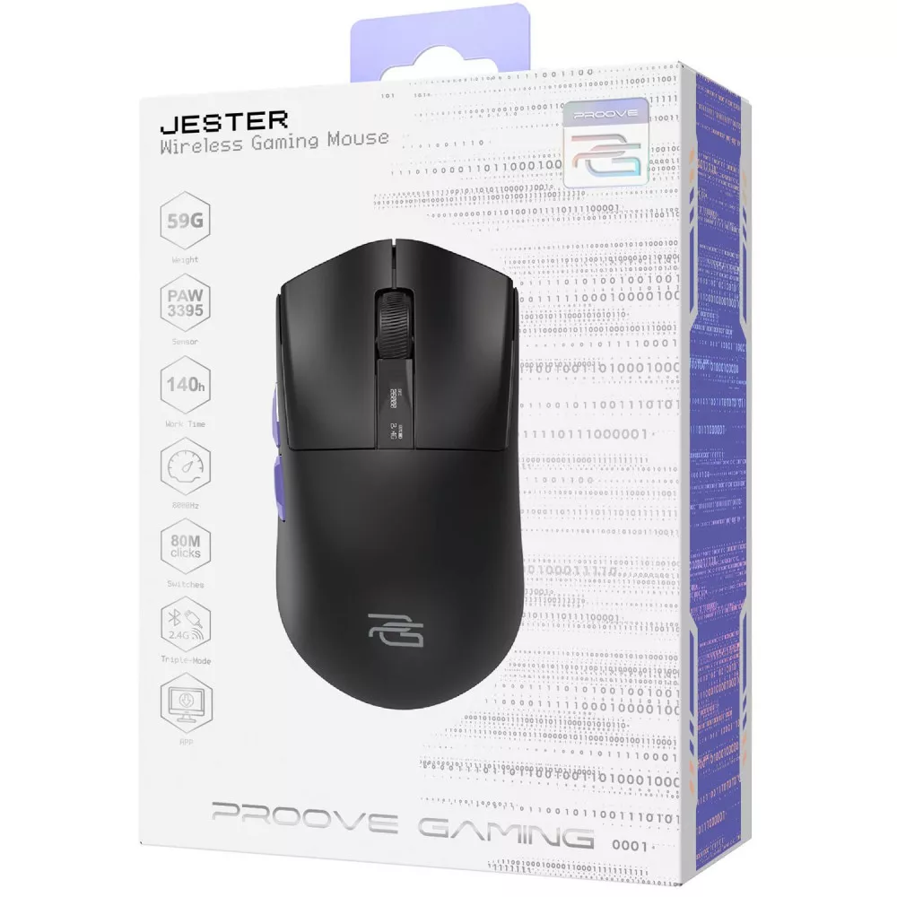Proove Gaming Jester – надлегка миша вагою лише 59г з агресивним профілем і OLED-дисплеєм для індикації ключових параметрів. Вона створена для геймерів, які не йдуть на компроміси у вигляді, функціональності чи відчуттях.