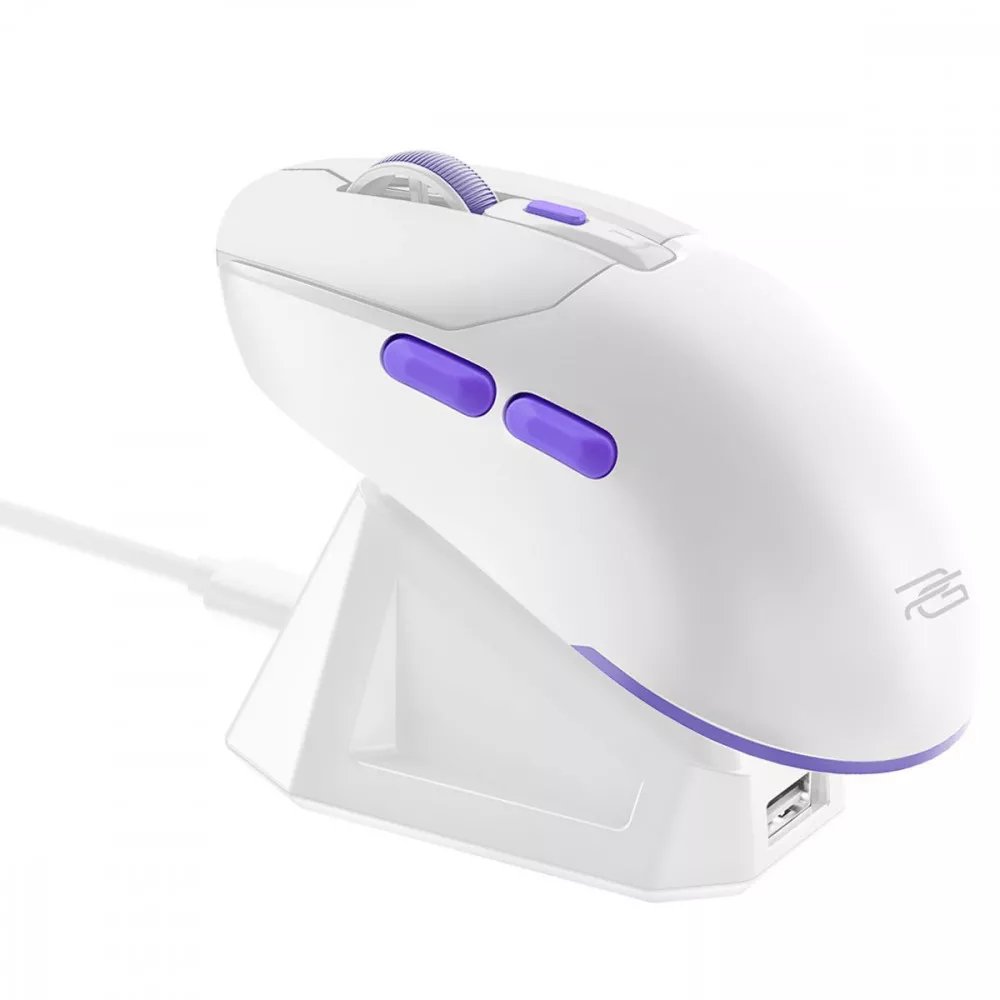 Мишку можна зарядити через Type-C або поставити на док-станцію – це просто і зручно. Станція має клейову основу для фіксації на столі та RGB-підсвітку для створення геймерської атмосфери.