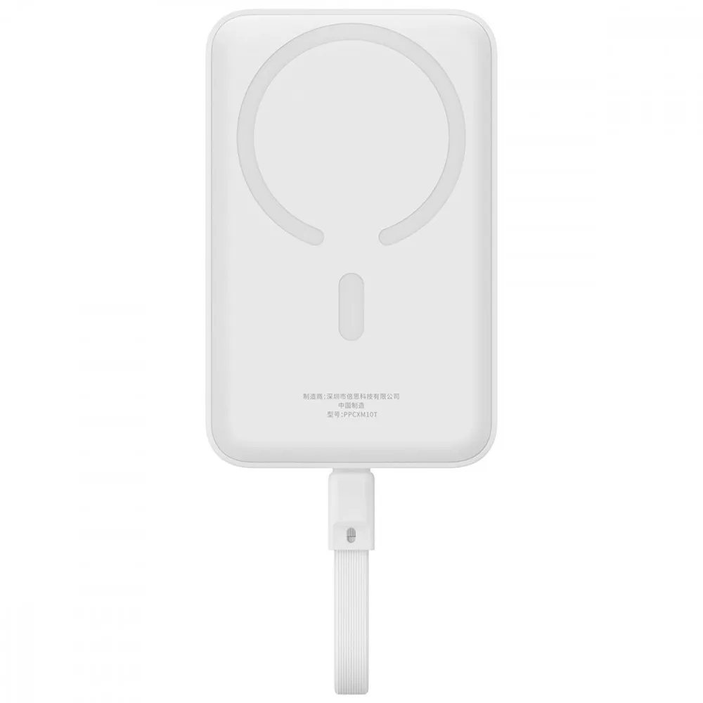 Сильний магніт утримує телефон надійно, а компактні розміри дозволяють носити павербанк у кишені. Підтримка бездротової зарядки, сучасний Type-C порт та сумісність з MagSafe роблять його універсальним рішенням для подорожей і щоденного користування.